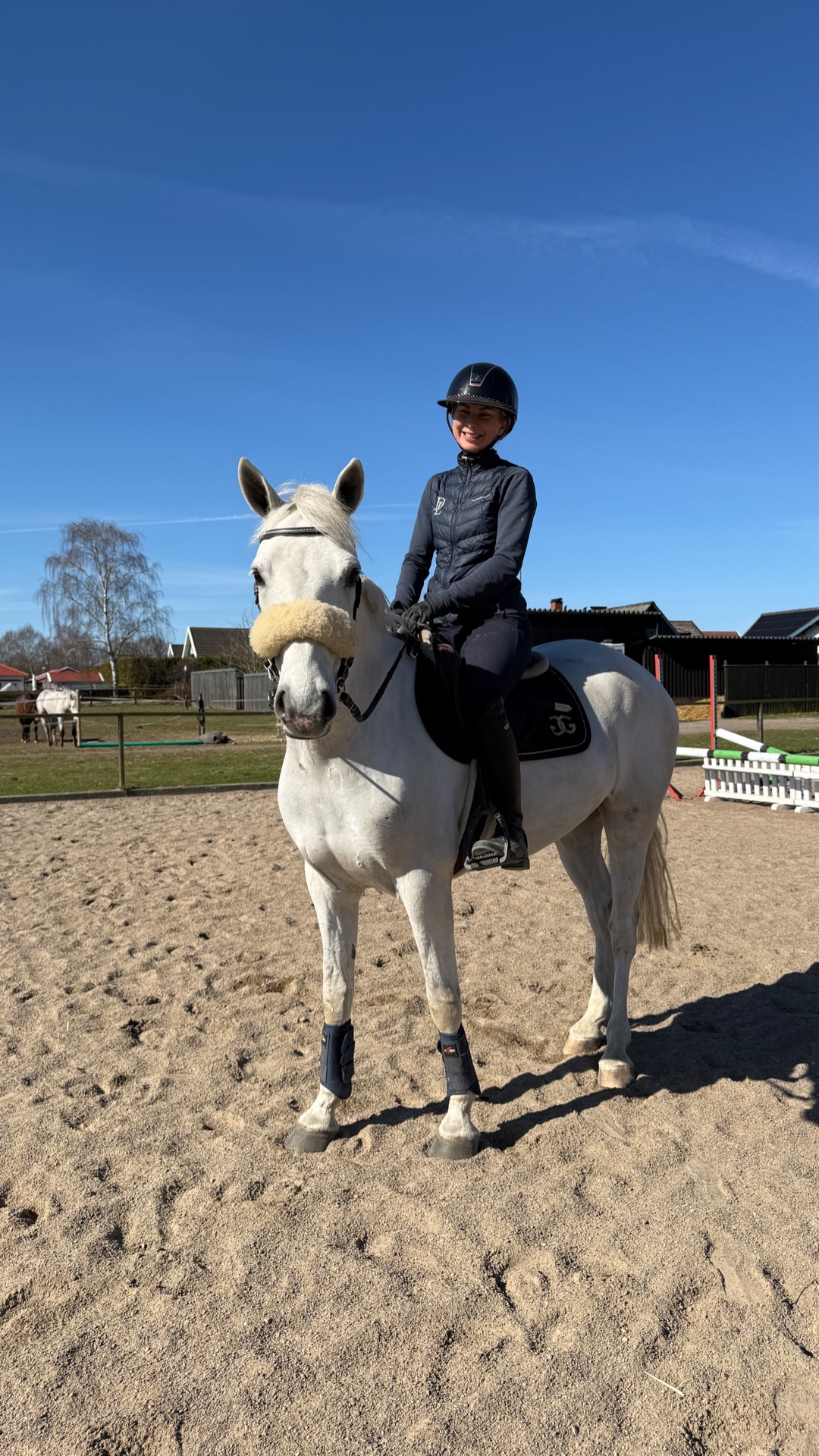 Trevlig tjej med fina gångarter och bra språng. Finns mycket potential för utveckling. Lite försiktig av sig i hantering och vill verkligen inte trampa fel. Härlig inställning vid ridning.